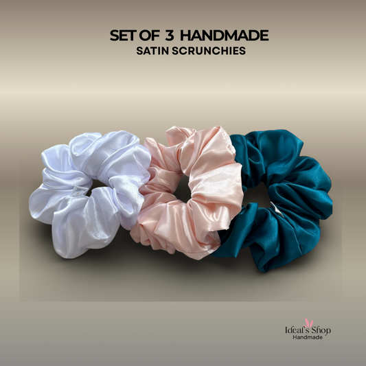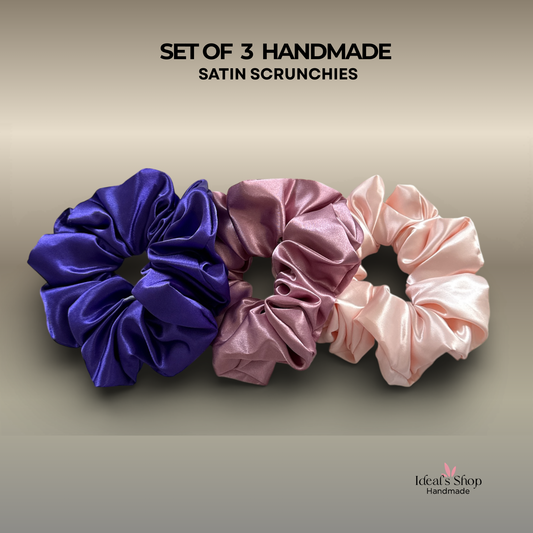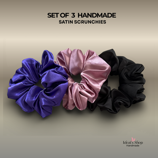 XL Satin Scrunchies Set of 3 – Premium Handmade No-Pull Hair Ties for Women & Girls – Oversized Scrunchies –