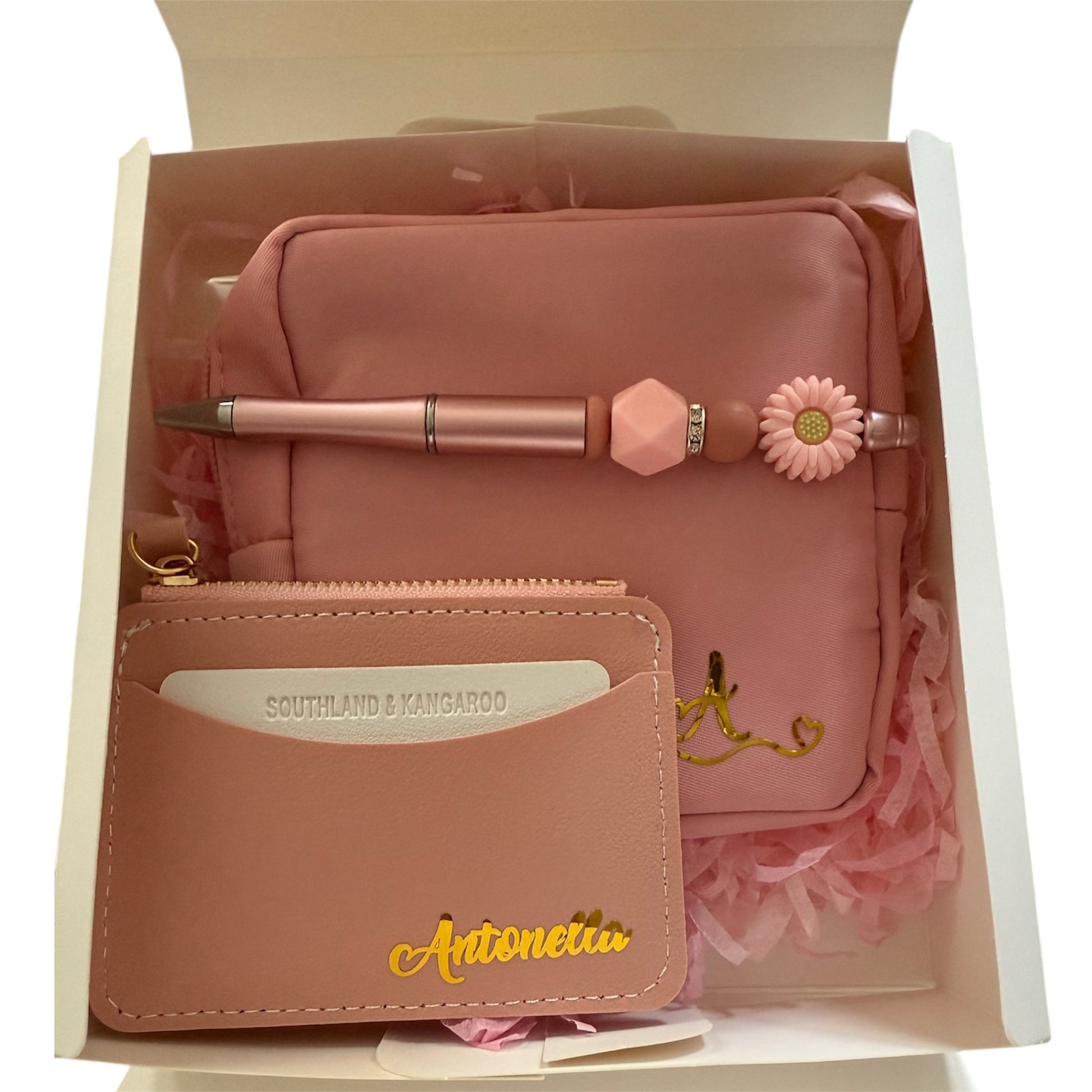 Gift Box: Cosmetic Bag, Card Holder, and Bohemian Pen