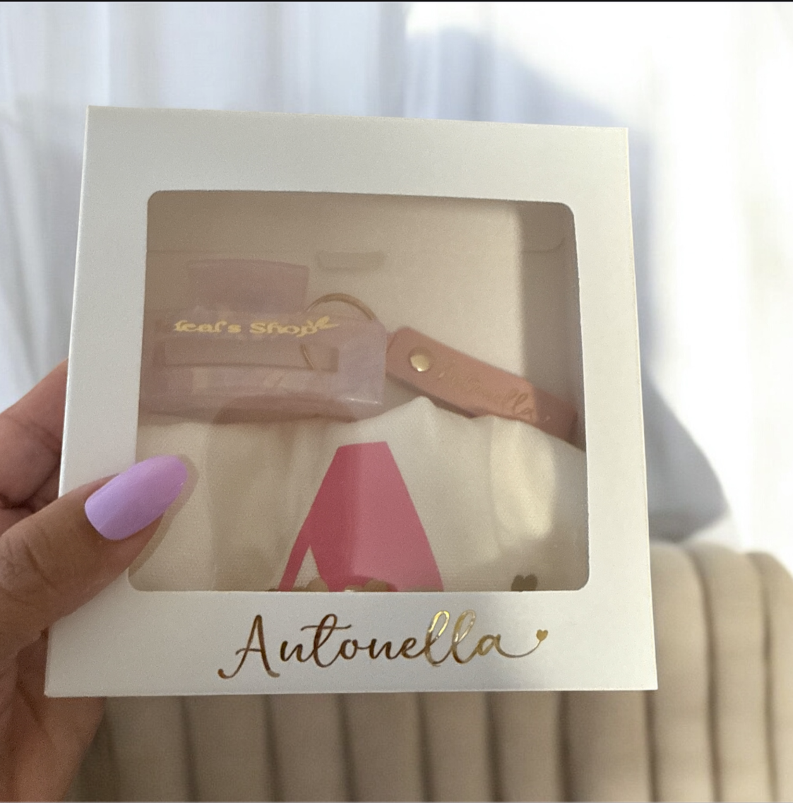 This gift box is the perfect solution for adding a personal touch to any gift for a special occasion. It includes a scrunchie, comb, and claw, all in elegant packaging for a unique and special gift. Make any gift even more special with our customizable gift box.