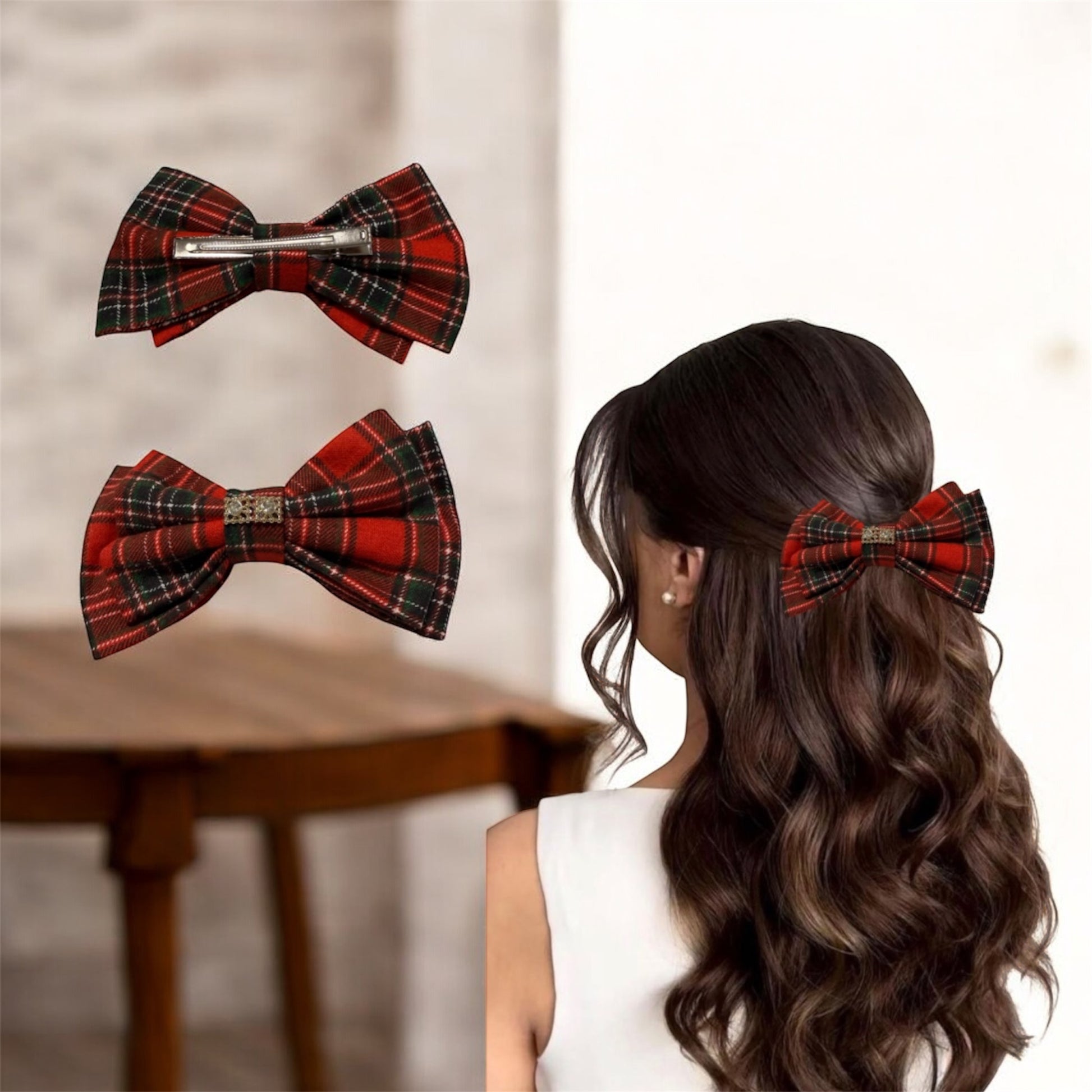 Add a classic and charming touch to your hairstyles with our Royal Bows, handcrafted from buffalo plaid fabric in three different prints. Their sturdy design maintains its shape perfectly, and the gold accent in the center adds an elegant and festive sparkle.