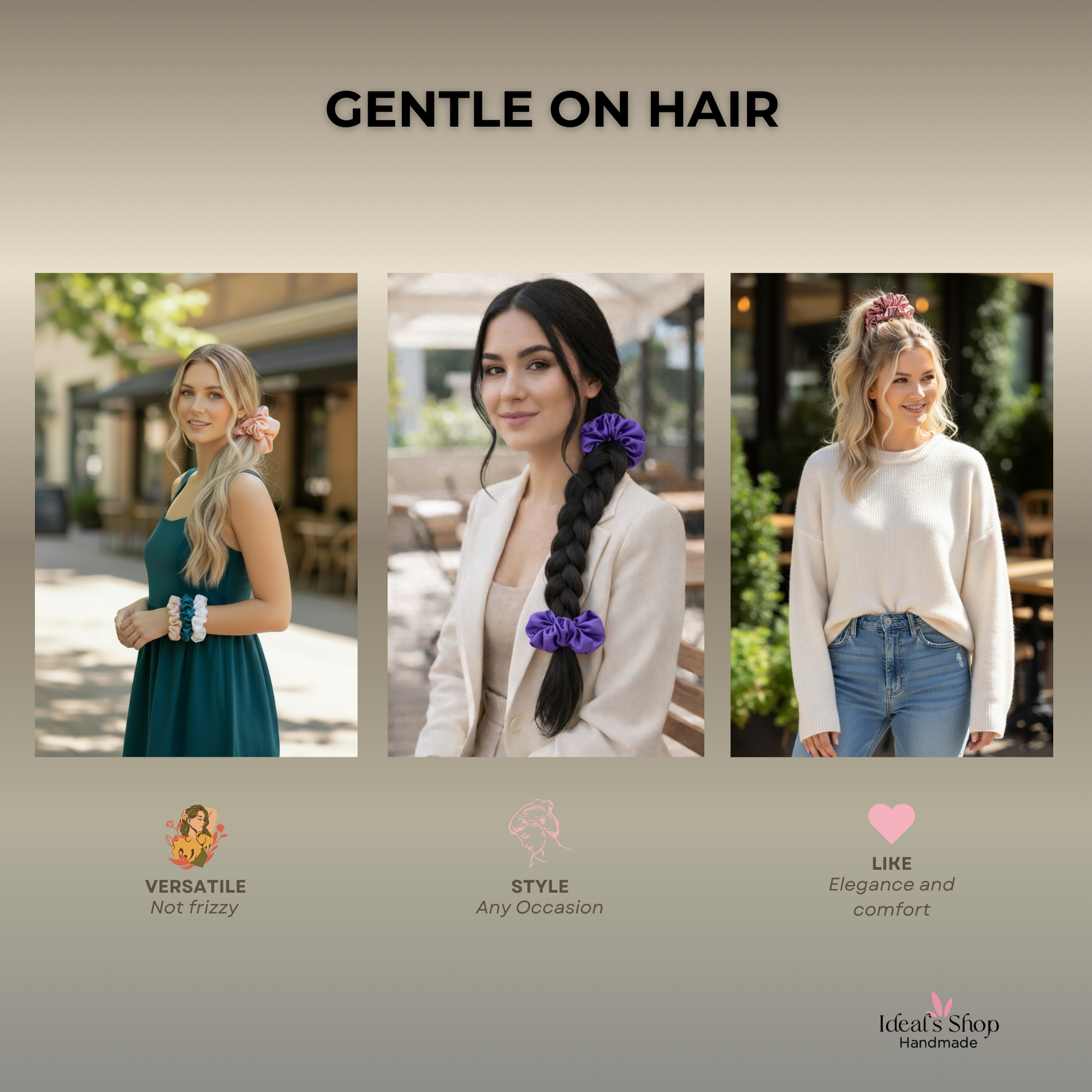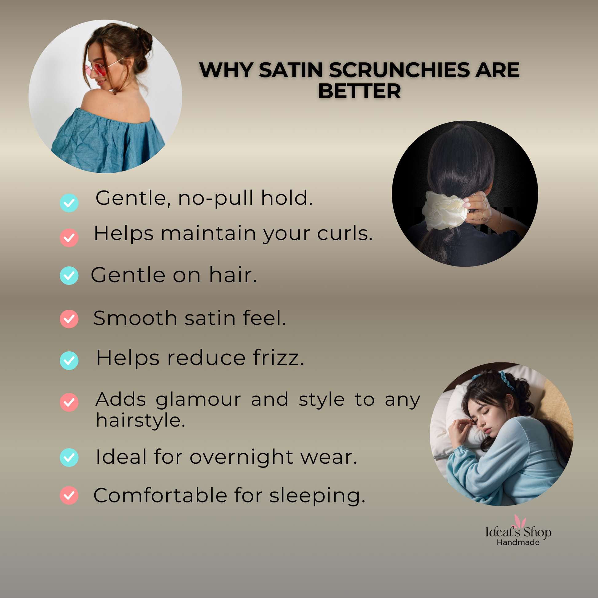 - HANDMADE SATIN QUALITY: Each scrunchie is carefully handmade with smooth, high-quality satin for an elegant look.