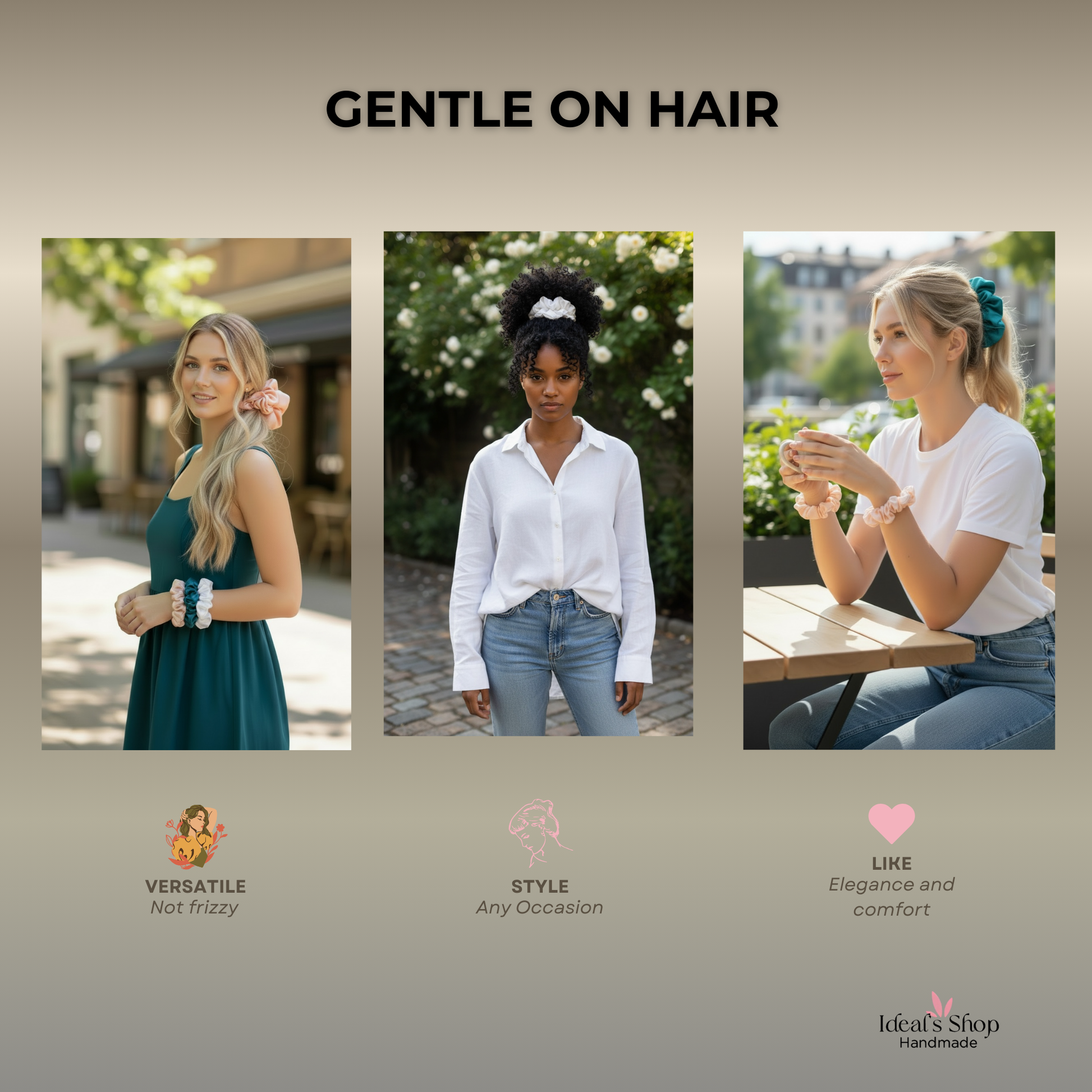 - HANDMADE SATIN QUALITY: Each scrunchie is carefully handmade with smooth, high-quality satin for an elegant look.